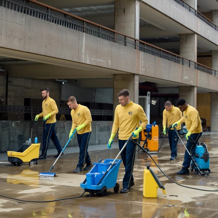 Heavy-duty cleaning for warehouses and industrial spaces, including floors and machinery areas.