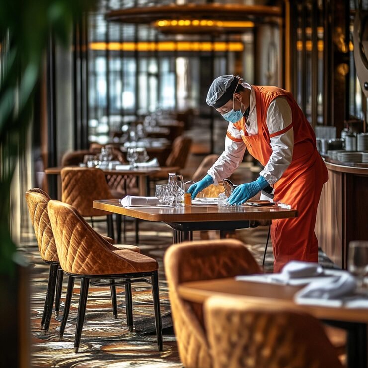 Thorough cleaning for kitchens, dining areas, and restrooms to maintain high hygiene standards.